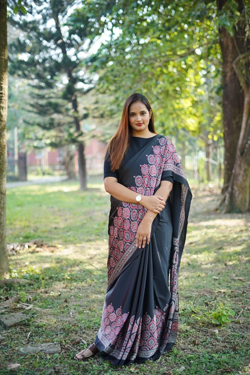 MIDNIGHT: A Satin Modal Silk Saree